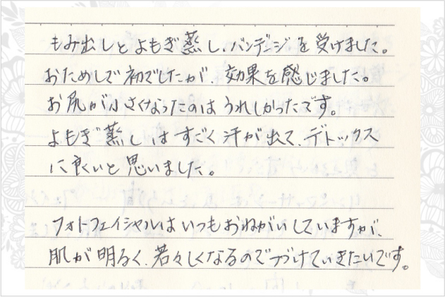 お客様がエステティックに求めることは、美肌、ダイエット、リラクゼーションに至るまで多岐にわたります。